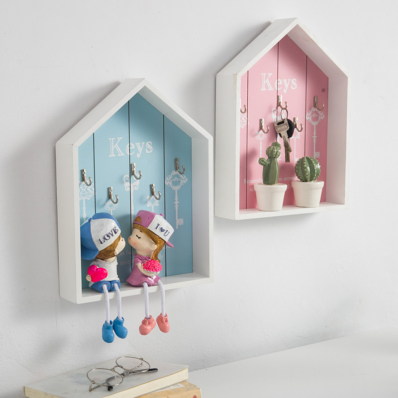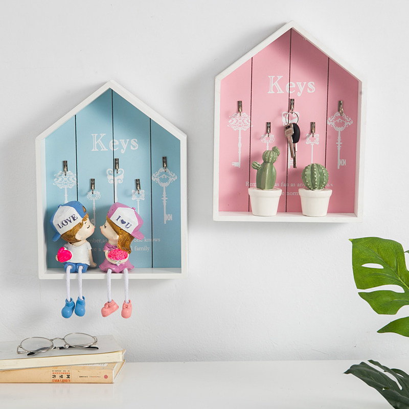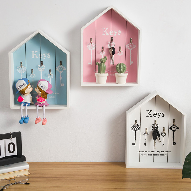 Nordic wooden creative personality door key holder storage box Wall hook entrance home decoration wall hanging