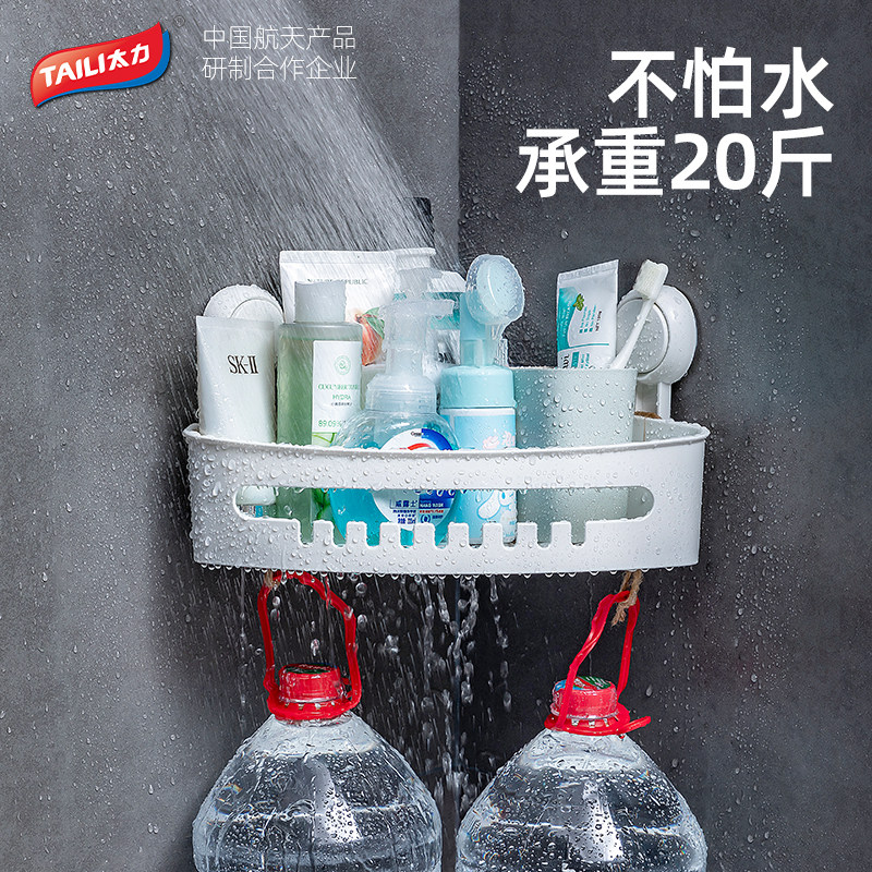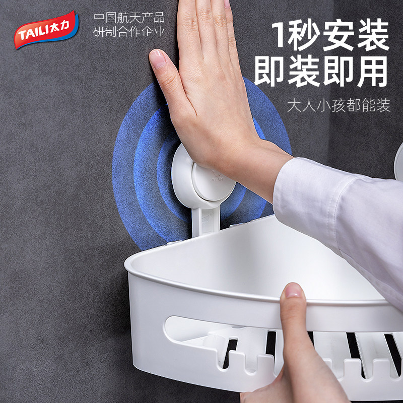Tai Li suction cup bathroom bathroom triangle shelf Wall-mounted hole-free toilet corner storage rack artifact