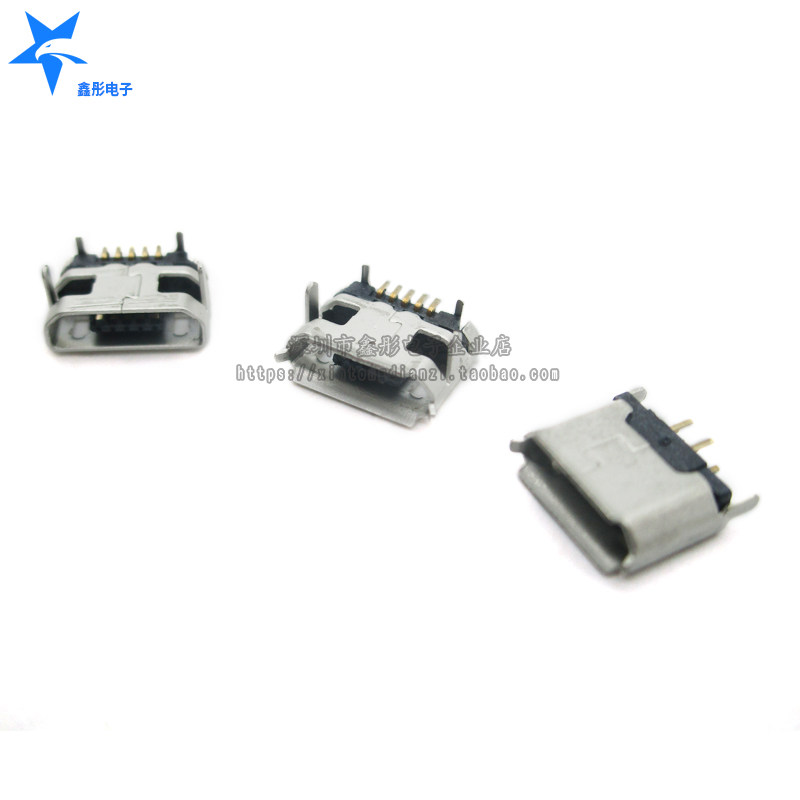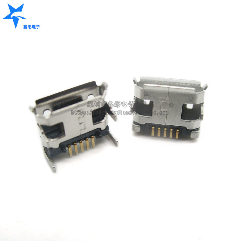 Micro-USB data interface female seat full copper 5P pin patch horn sinking plate with or without curling