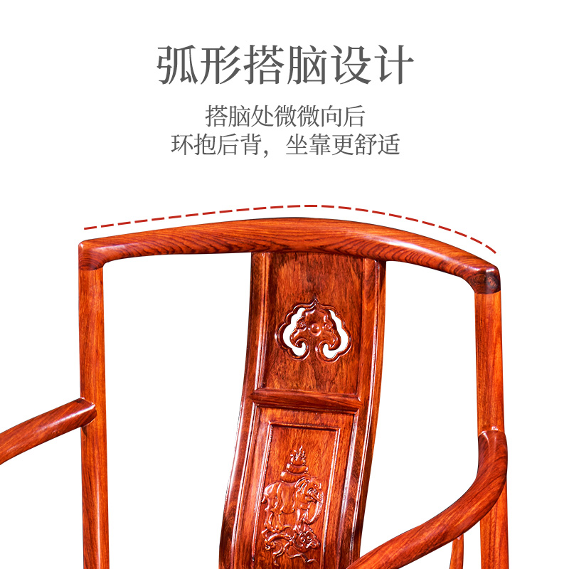 Mahogany circle chair Taishi chair three-piece set back chair rosewood office chair leisure chair hedgehog red sandalwood south official hat chair