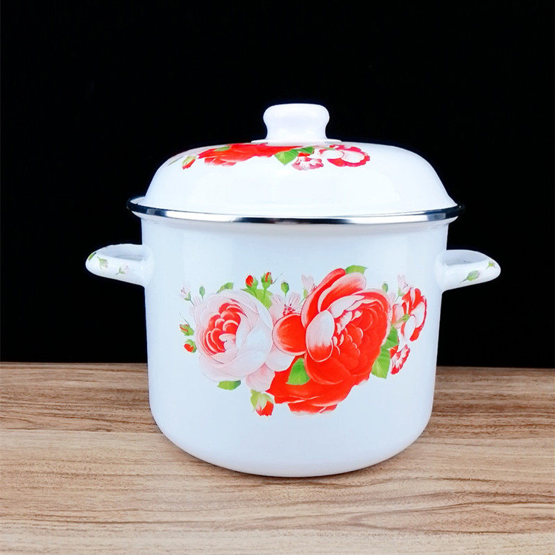 High soup pot enamel enamel storage rice barrel plus high-burn pot multipurpose pot large capacity thickened saucepan deepened stockpot