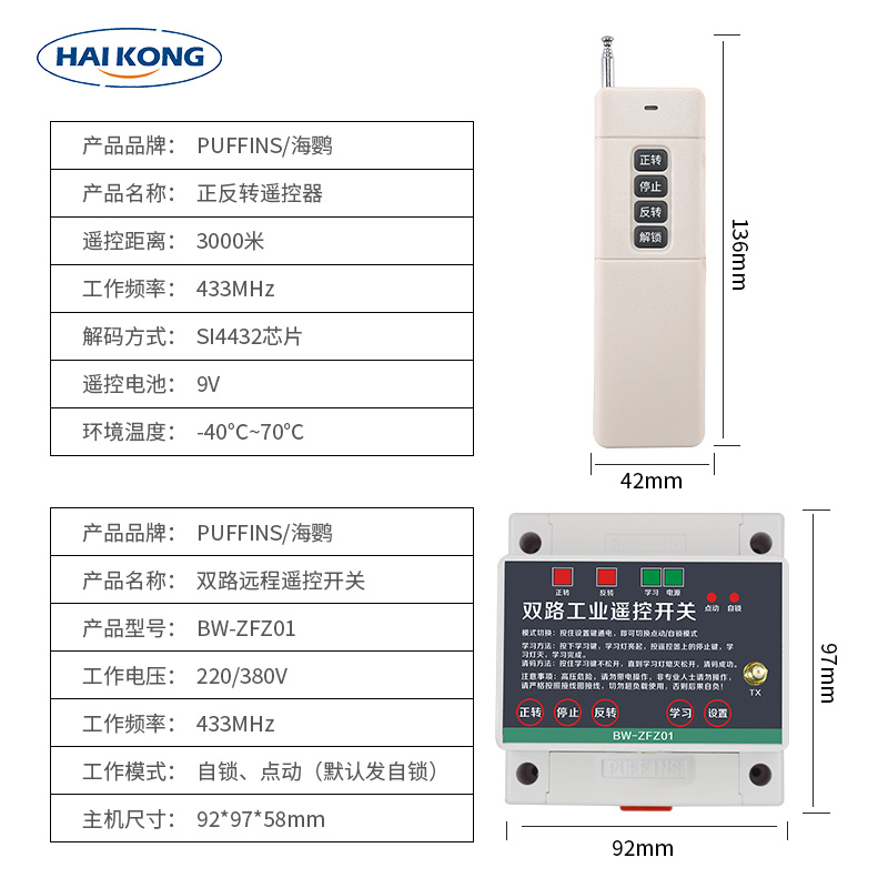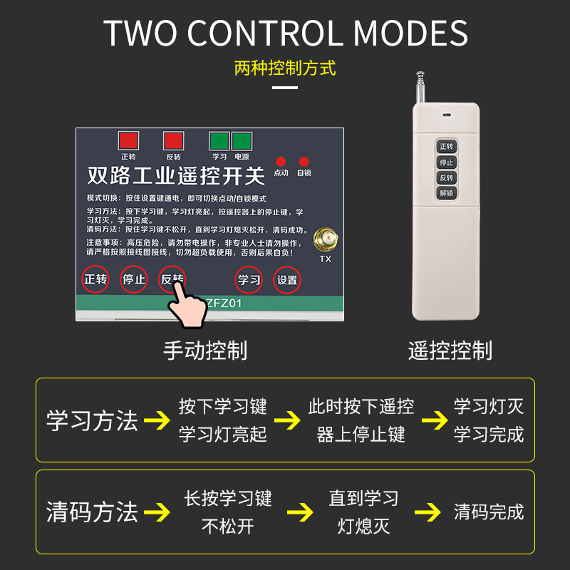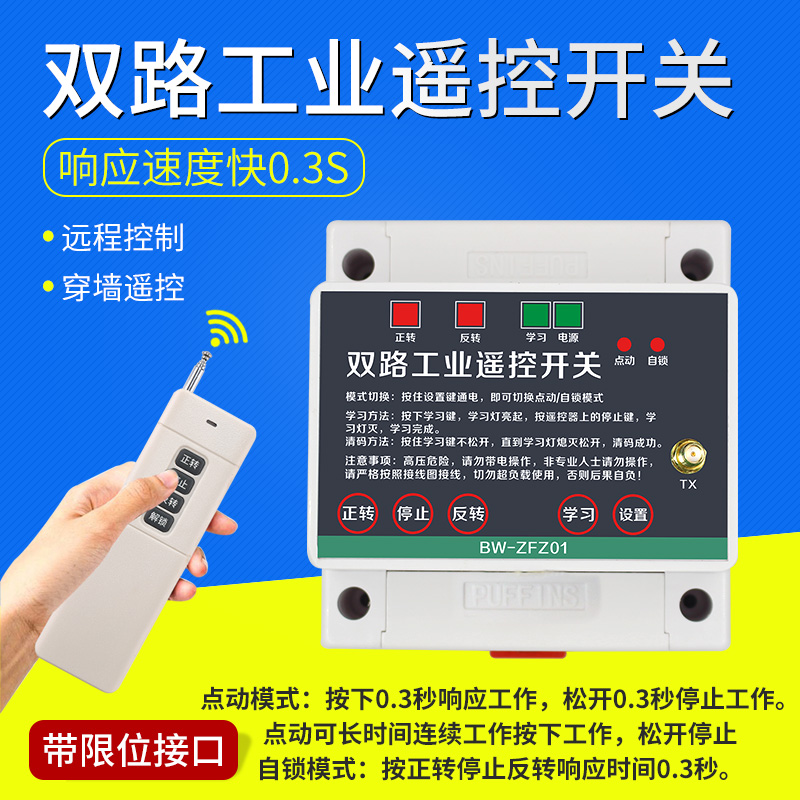 220V High power 1KW remote remote control switch two-way single-phase motor positive reversal greenhouse roller shutter controller