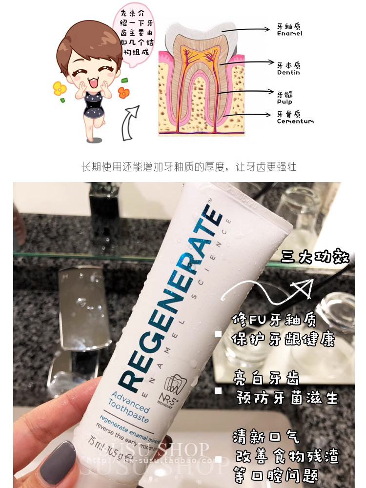 Refuse the yellow tooth French import Regerenate fix FU dental enamel toothpaste 75ml whitening to stain fresh breath-Taobao