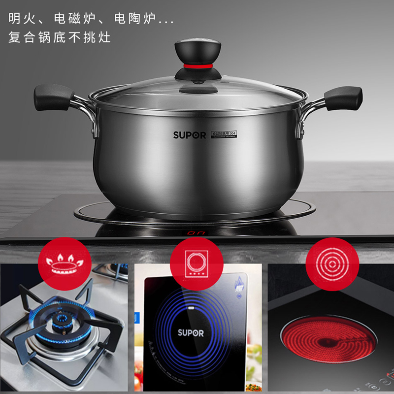 Supoir soup pan 304 stainless steel home milk pan thickened pan with baby side food cooking pan induction cookers gas