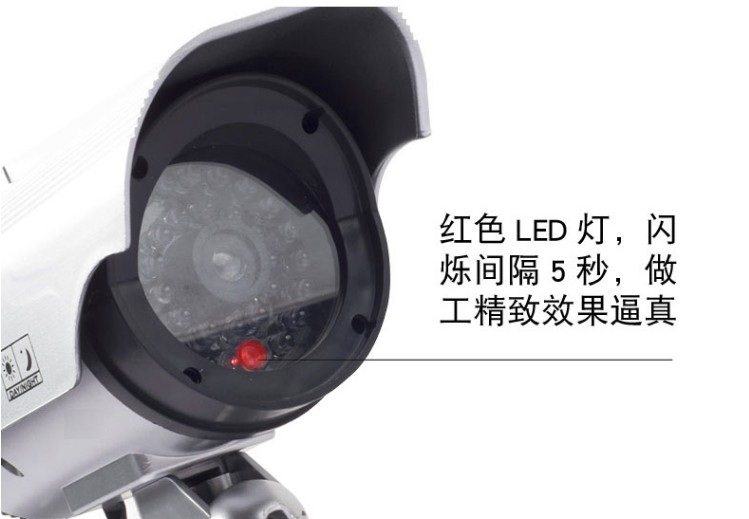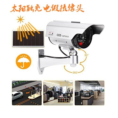 Outdoor solar rechargeable fake camera free of change battery silver color false monitoring with black tail wire LED sparkling