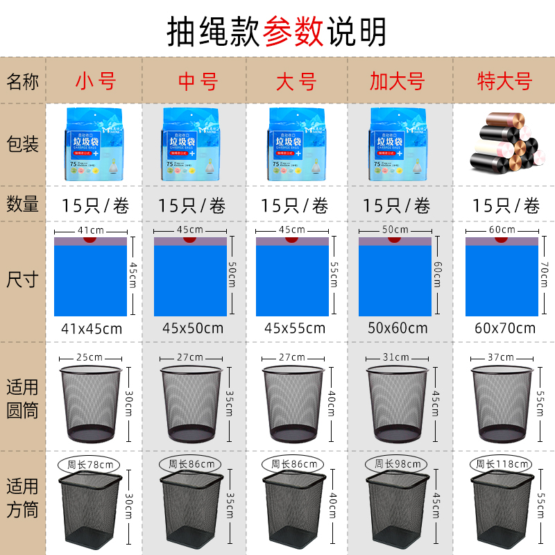 Medium drawstring type 45x50(5 rolls total 75 pcs)Color mix and match-Buy 2 copies get 3 rolls Medium drawstring type 45x50(5 rolls total 75 pcs)All black-Buy 2 copies get 3 rolls Medium