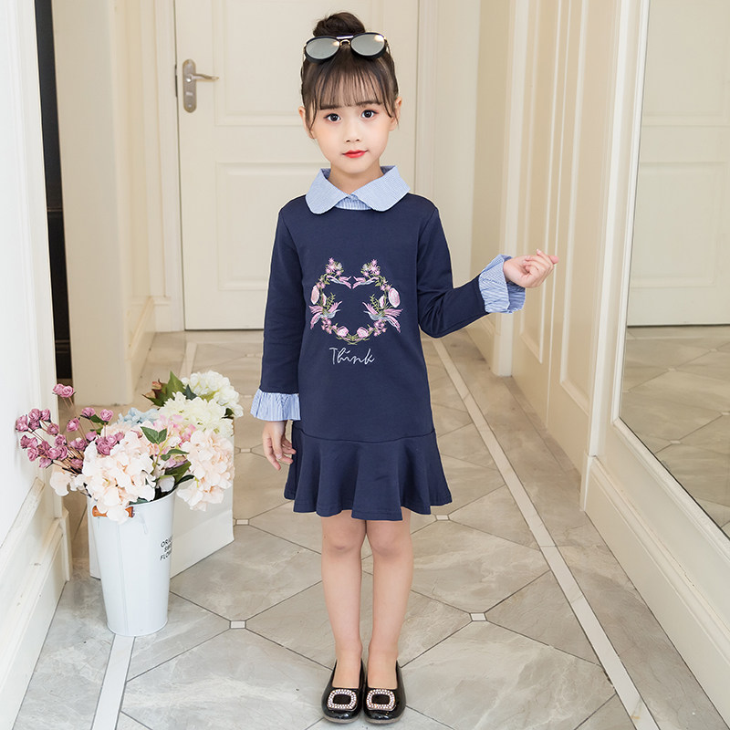 Girls' autumn dress 2018 new children's clothing big children's foreign style embroidery spring and autumn Korean version of children's long-sleeved skirt