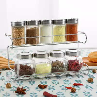 Seasoning box set household kitchen combination seasoning bottle glass pepper salt jar rotary sprinkle can barbecue