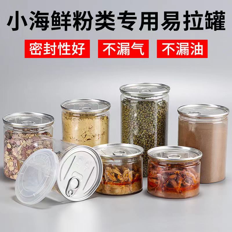 Sealed food grade pet plastic cans transparent packaging small seafood with empty bottle commercial sealing machine cans