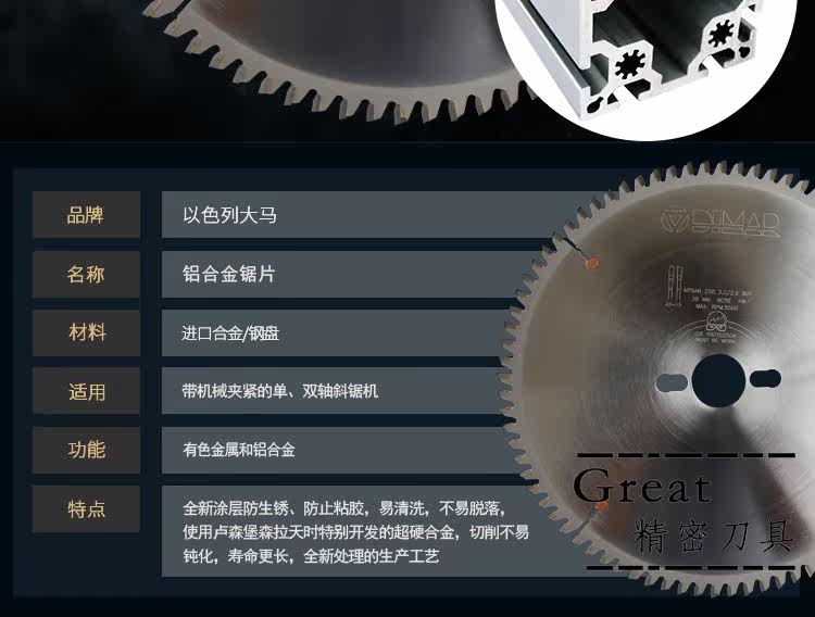 Israel Malaysia saw blade super hard coated aluminum alloy saw blade cutting door and window aluminum extrusion material 350*3 2*108t