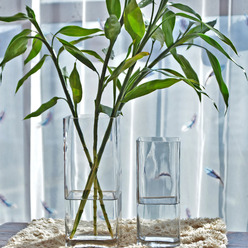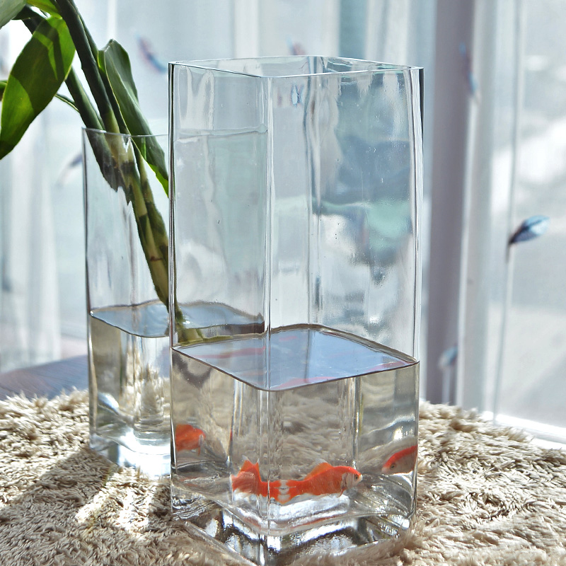 Square hydroponic glass container transparent square tank hydroponic copper money grass gold Ge flower pot table top thickened square flower arrangement