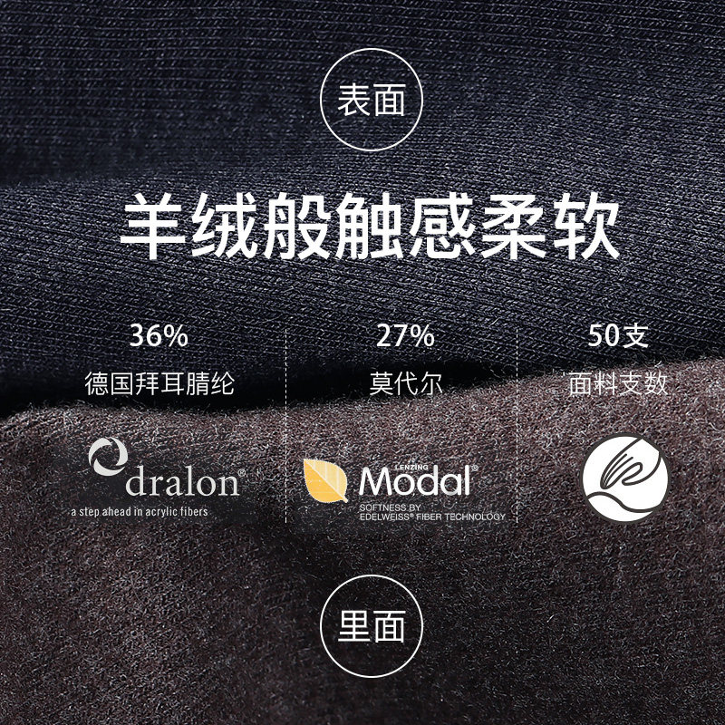 Acrylic fibre (nitrile) 36% Modale fiber (Modale) 27% cotton 27% polyurethane elastic fiber (spandex) 10%