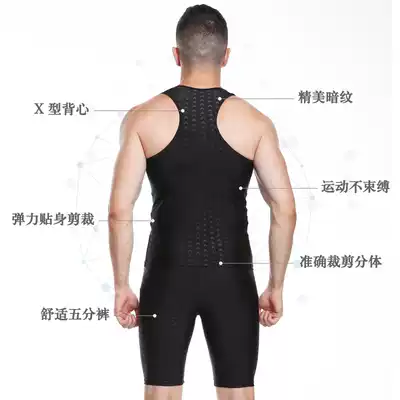 Swimsuit men professional quick-drying two-piece Large size anti-embarrassing five-point swimming trunks men hot spring coat sunscreen swimming equipment