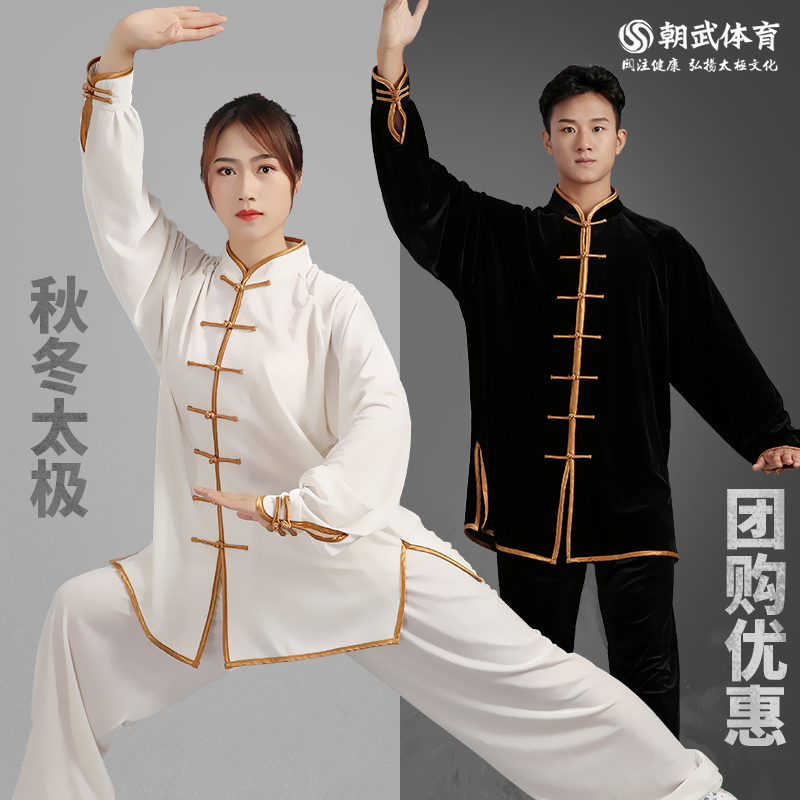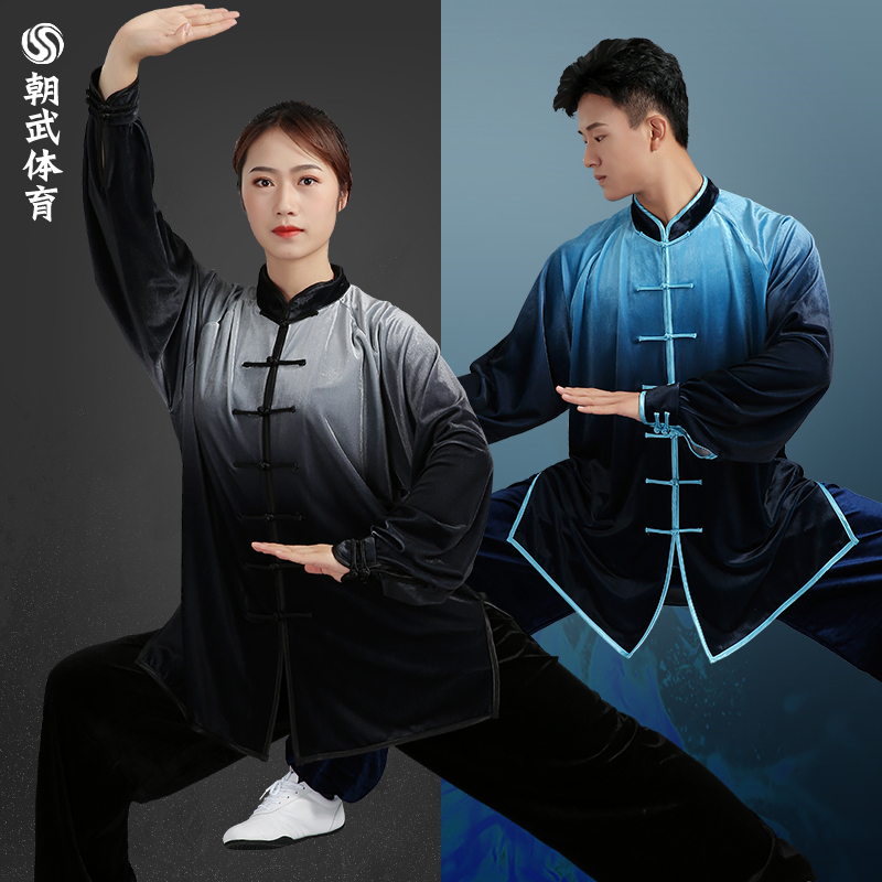 Gold velvet tai chi suit women's autumn and winter thickened practice suit Men's South Korean velvet tai Chi pants middle-aged Tai Chi Chuan clothing
