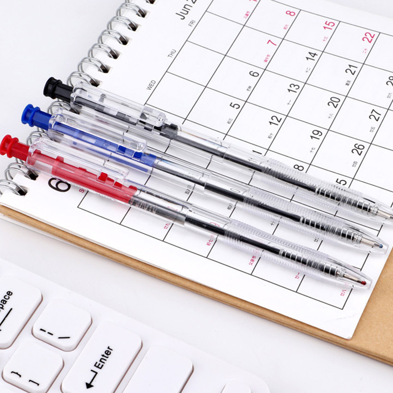 48 Branches of Pink Ball Pen Sub Warhead Transparent Pen Lever Key Pen pen office use 0-7mm red blue black three-color atomic pen students learn to write oily pen stationery wholesale with pen