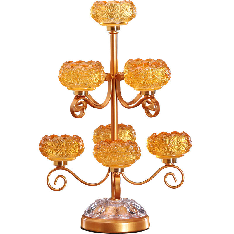 Seven stars Butter Lampholder with a glazed lotus candlestick (one set of seven) glass eight auspicious candlestick (one set of seven) 3-inch alloy glazed lotus lamp holder with 5-inch alloy glazed lotus