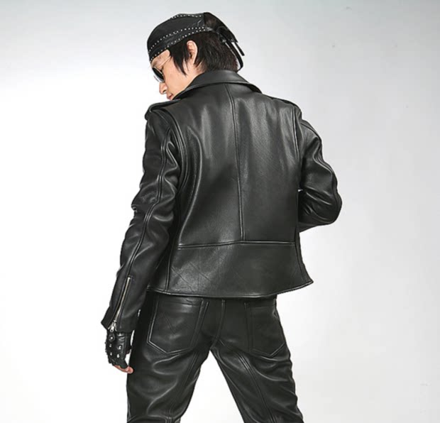 New Korean classic diagonal zipper cowhide black men's slim Harley Knight leather motorcycle jacket
