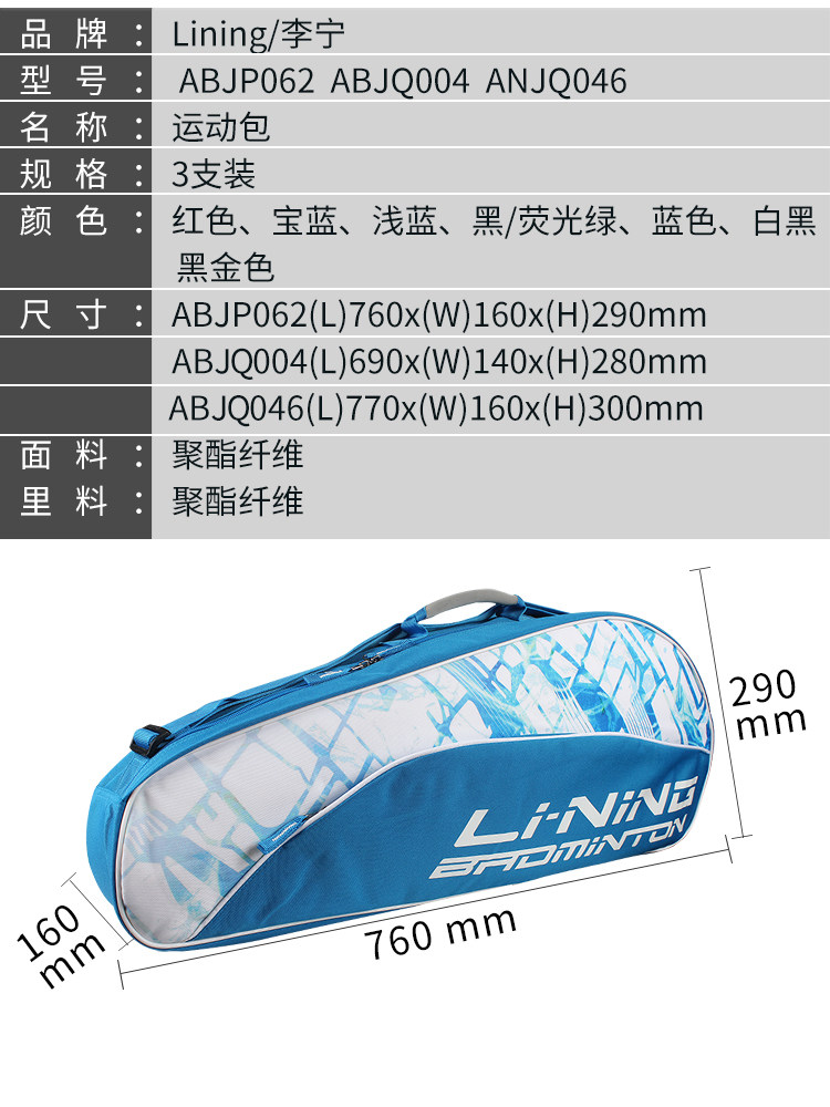 Li Ning Badminton Racket Bag One Shoulder Backpack Multi-function Portable 3 Three Support Sports Equipment Portable Bags Men and Women