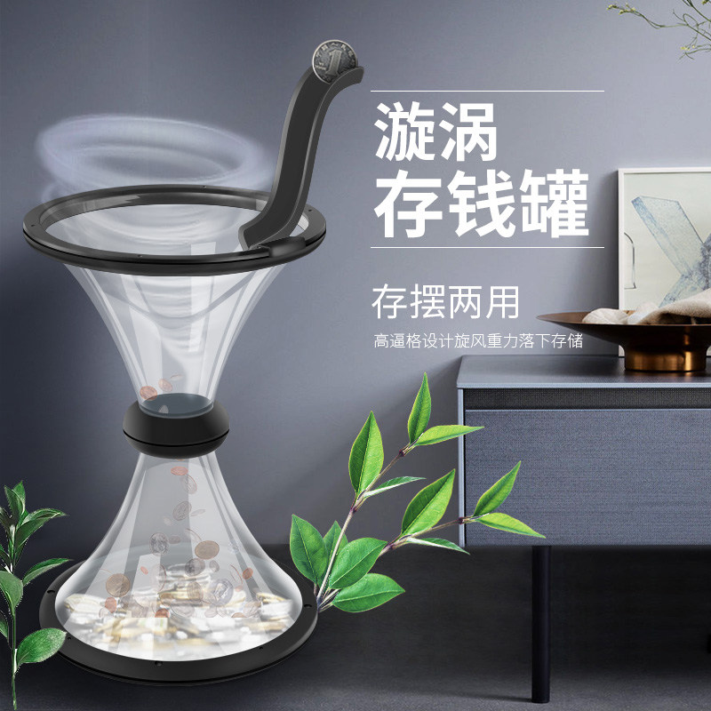 Creative minimalist Transparent Cyclone Deposit Money Pot Coin Deposit Money Cylinder Fun Personality Net Red Christmas Small Gift for boys and girls