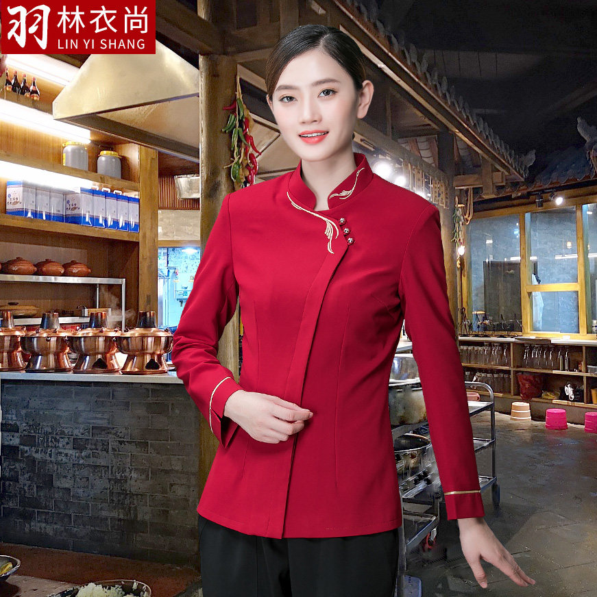 Hotel Work Clothes Autumn Winter Clothing Women's Fire Pot Shop Middle Restaurant Catering Tea Building Hotel Front Hall Attendant Long Sleeve Uniform