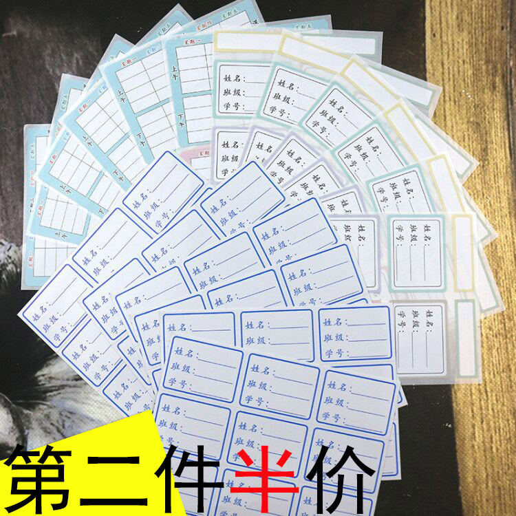 Auspicious Bird self-adhesive white name stickers for primary school students Class number Class schedule Color stickers for signature name 5 packs
