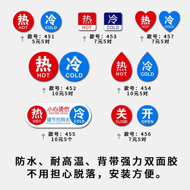 Round hot and cold (5 pairs)Square hot and cold(5 pairs)Heart hot and cold(5 pairs)Drop hot and cold(5 pairs)Long hot and cold (5 pairs)Medium round switch (5 pairs)