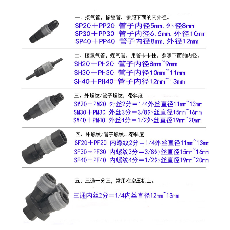 Plastic steel self-locking quick C-type connector pneumatic air pump hose male and female quick plug tee 8mm1012 oxygen air compressor