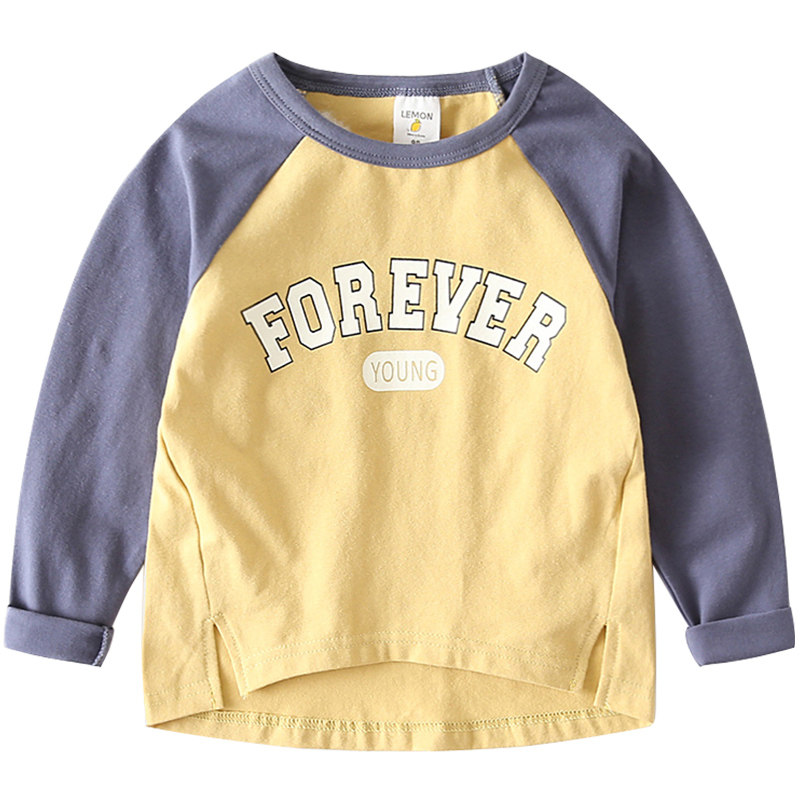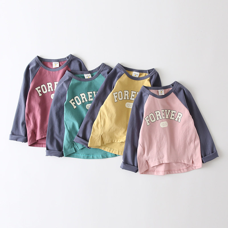 Korean version contrast color children's T-shirt long-sleeved cotton baby top tide 2021 spring and autumn new children's clothing boys base shirt