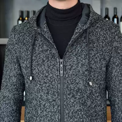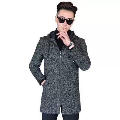 2021 new men's autumn and winter woollen wool coat men's medium and long windbreaker men's over-the-knee hooded warm jacket