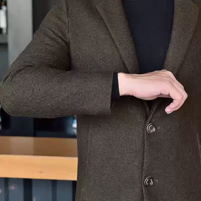 2021 autumn and winter one-sided woolen coat men's medium and long version of wool coat slim woolen coat trench coat tide