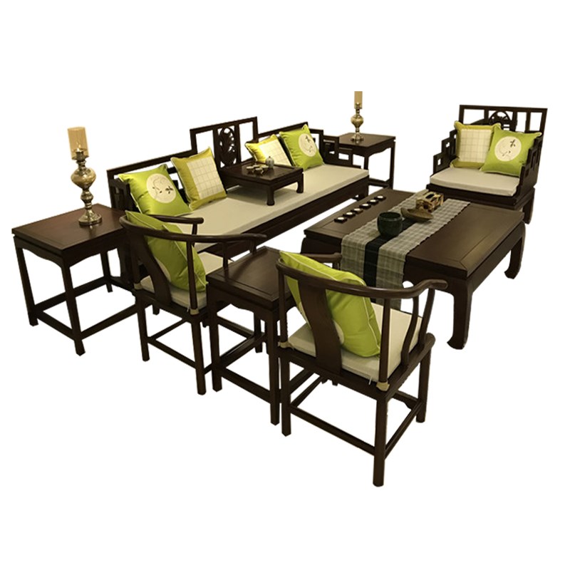 New Chinese style solid wood sofa combination antique living room fabric sofa villa model room Zen classical furniture customization