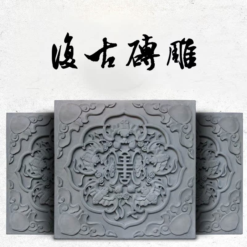 Small Li Family Courtyard House Imitation Ancient Brick Sculpture Photo Wall Reliefs 40cm Wufu Holding Suqing Brick Chinese Floor Tile Decoration Material