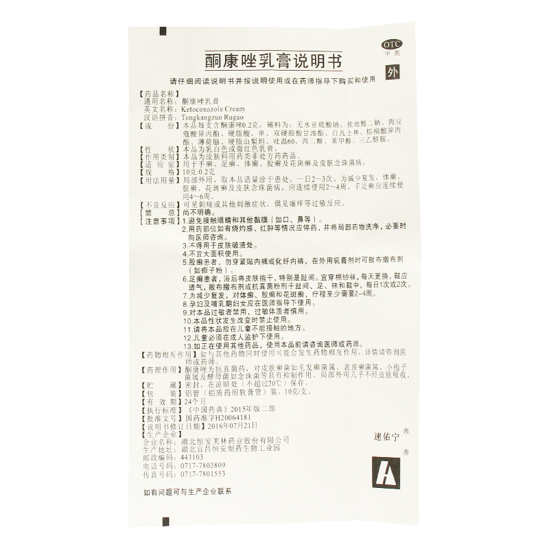Speed You Ning ketoconazole Cream Cream 10g Ointment Ketones Consetback Skin Candidiasis Antifungal Drug Body Ringworm