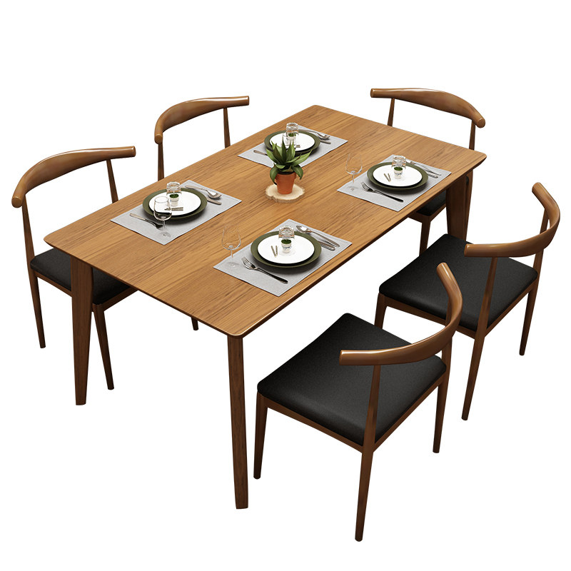 Retro Wrought iron solid wood dining table Household rectangular hotel Modern simple small apartment dining table and chair combination Nordic style