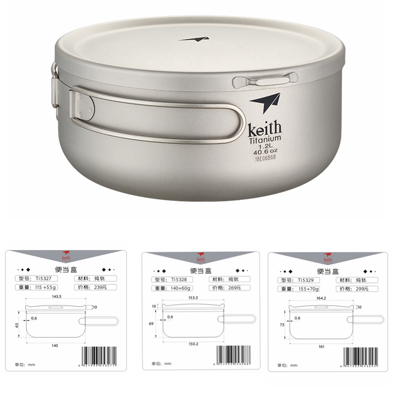 keith shears pure titanium light weight portable with lid titanium bowl outdoor lunchbox Blister Noodles Bowl Titanium Cutlery Canteen Lunch Box