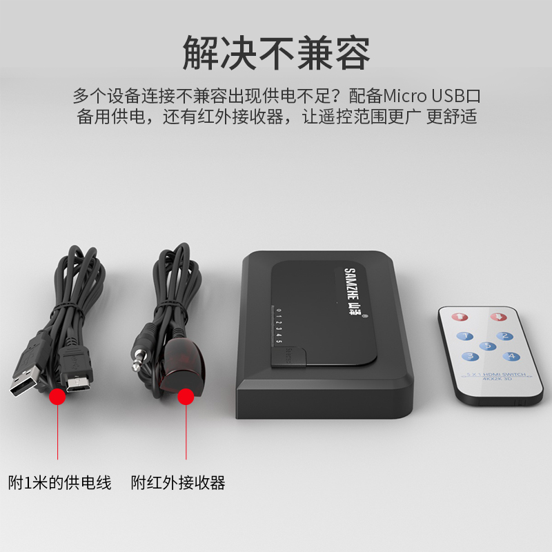 Mountain Zehdmi switcher 5 to 1 out HDMI dispenser 3 4 5 further out 4K high-definition remote control branch screen