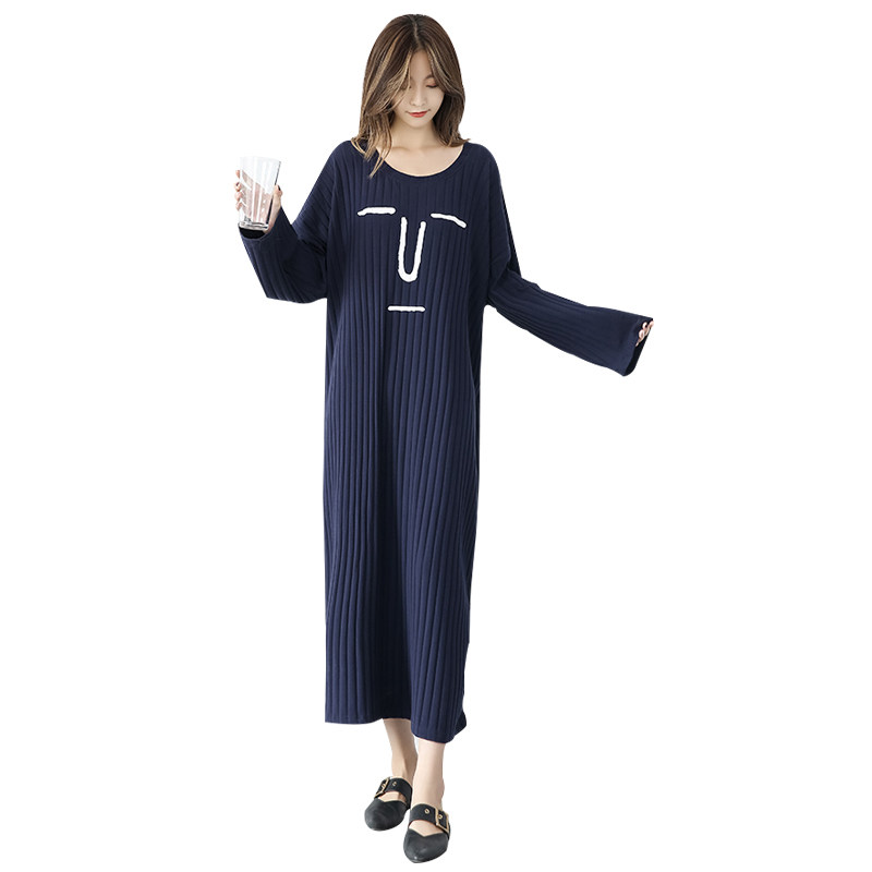 Autumn Winter Pyjamas Woman Loose Long Sleeves Pure Cotton Super Long Style Sleeping Skirt Woman Fat MM200 Catty Yard size Home Pregnant Woman