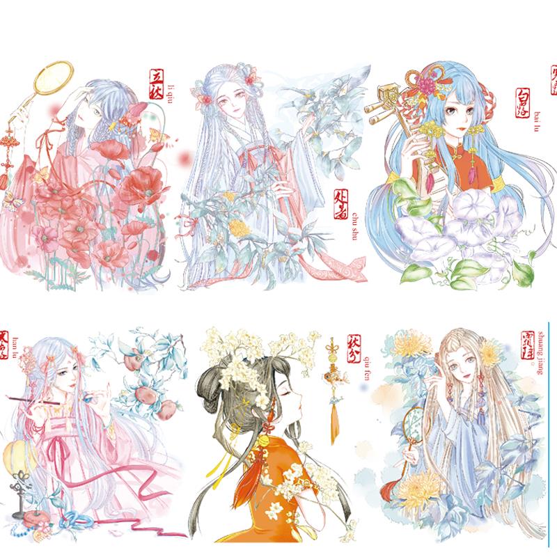 New product special oil and paper hands tape twenty-four solar girl Chinese ancient air character diy decoration whole roll paste