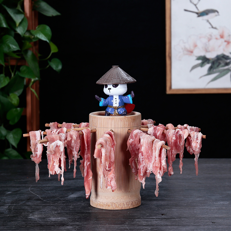 Shu Daxia Tai Chi Panda Shrimp Slipper Creative Tableware Revolving Small Hot Pot Shop Bamboo Tube Skewers Fragrance Special Shabu Meat Plate