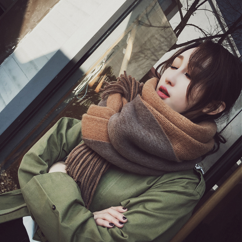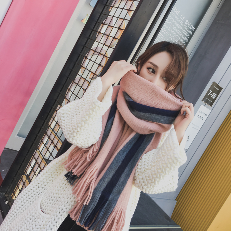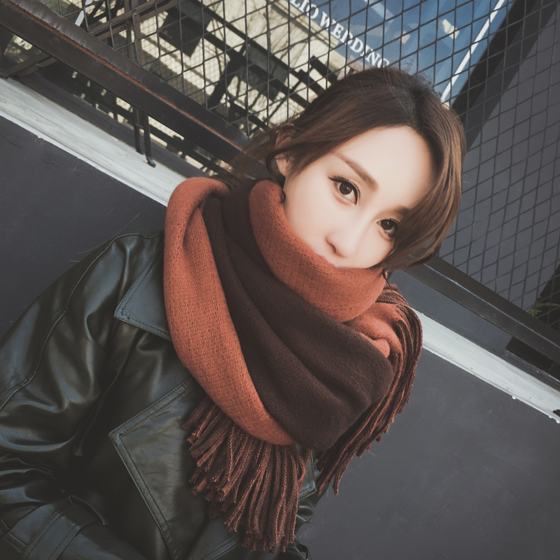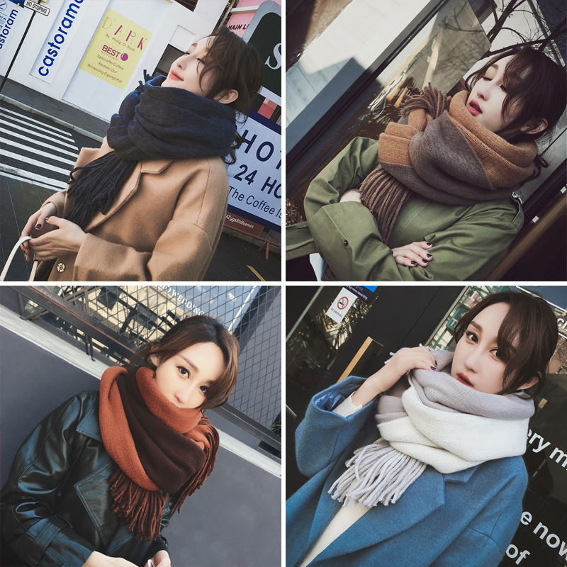 Double-sided scarf women's autumn and winter Korean version of the all-match long solid color thickened shawl warm knitted wool student scarf