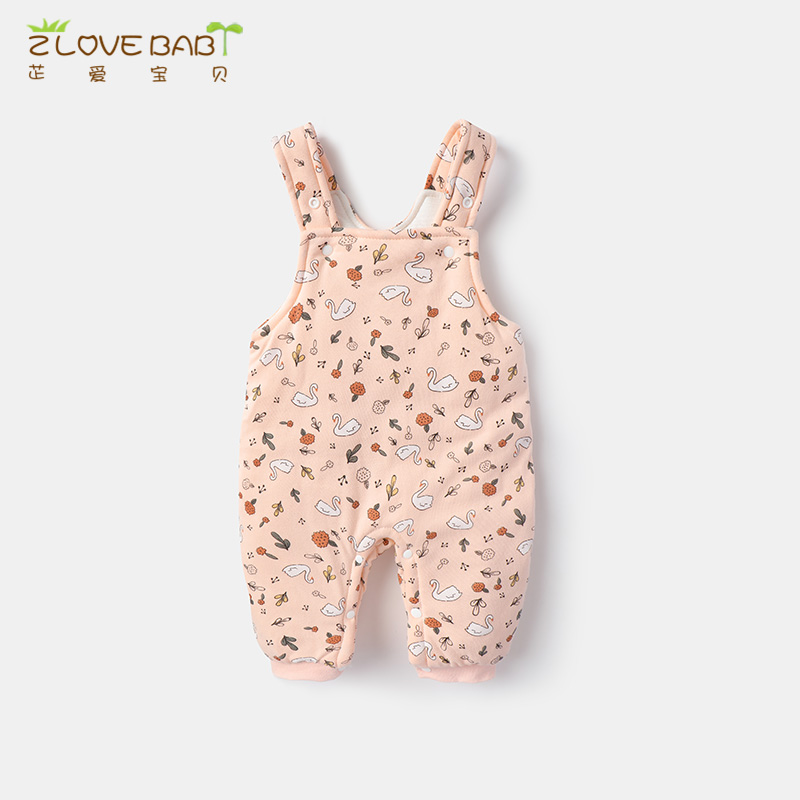 Baby girl bib pants Autumn and winter baby autumn and winter thickened one-piece pants cotton pants warm pants