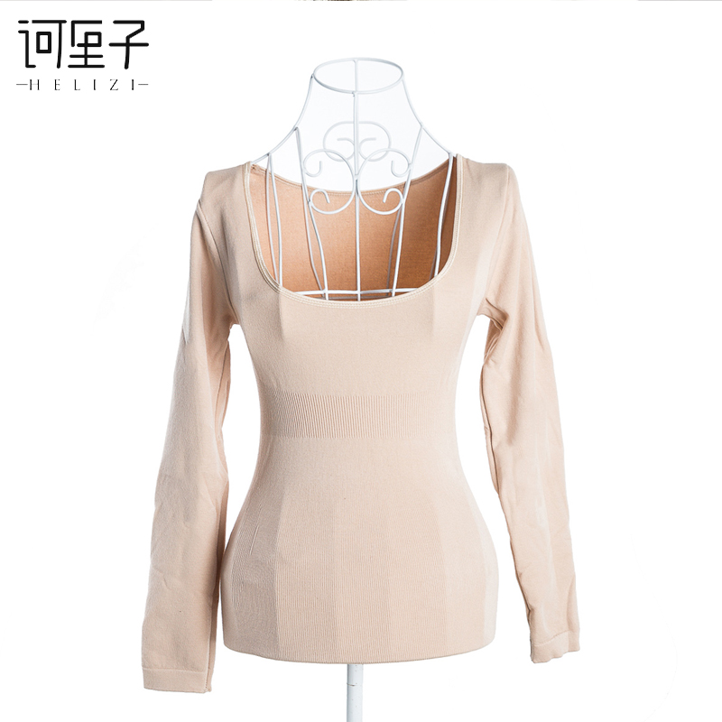 Autumn and winter U-neck autumn coat thickened terry velvet base shirt High elastic slim single layer heating coat women's top single piece