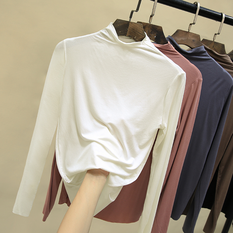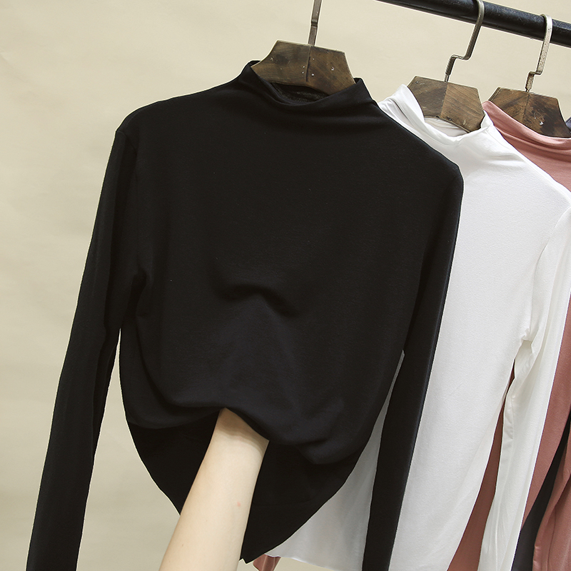 Modal half high collar base shirt women plus velvet padded interior wear autumn and winter long sleeve T-shirt 2021 new black top