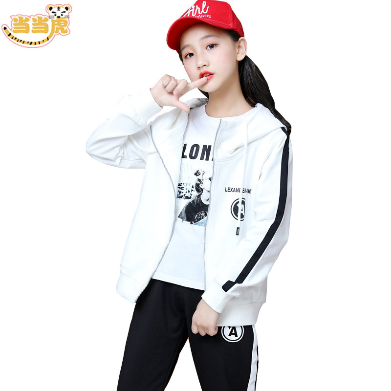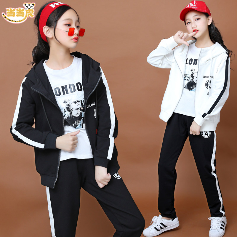 Girls' autumn clothes 2020 new foreign style girls' 12 spring and autumn styles 13 sportswear suits 15-year-old girls two-piece suit
