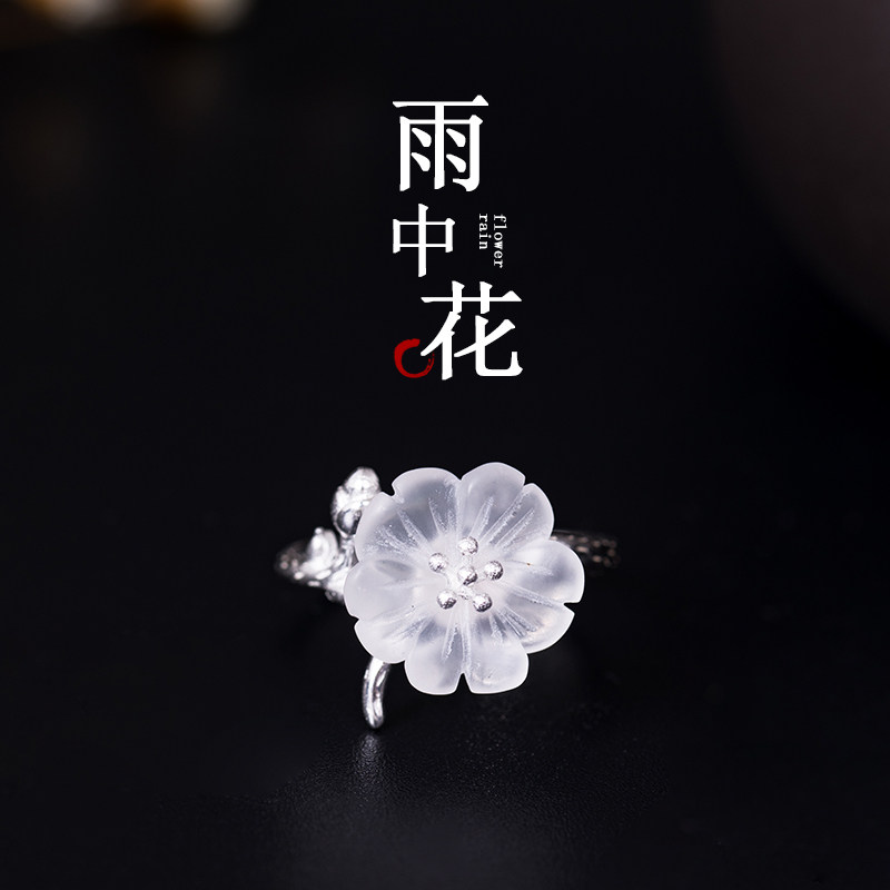 Flowers in the rain S925 silver ring crystal plum opening design retro ethnic handmade classical temperament ring