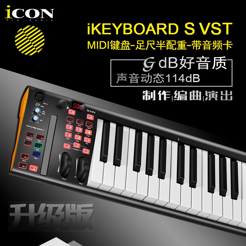 Aiken iCON Pro Audio) iKeyboard 4S VST Arranger Midi Keyboard 37 Keys with sound Card