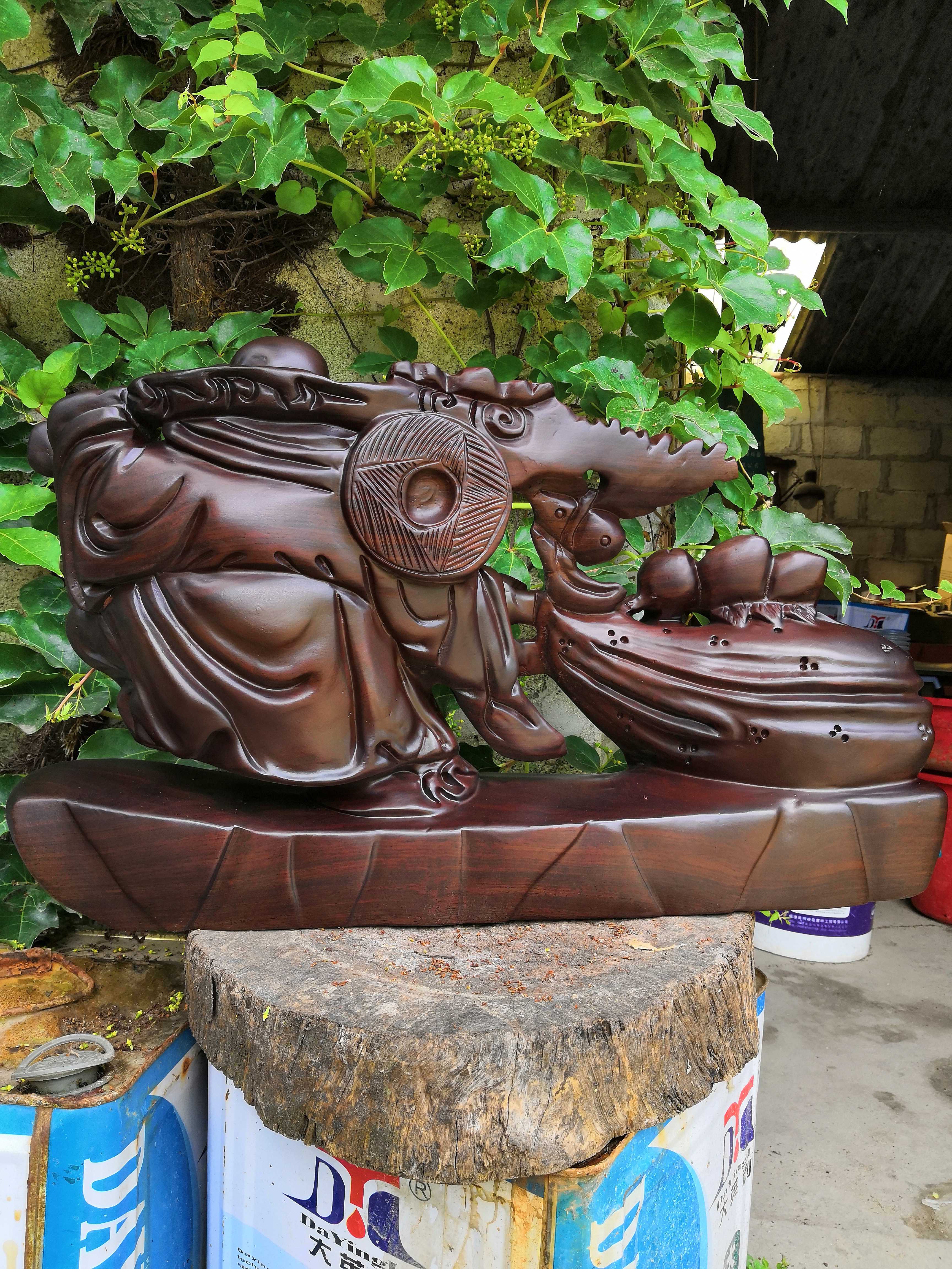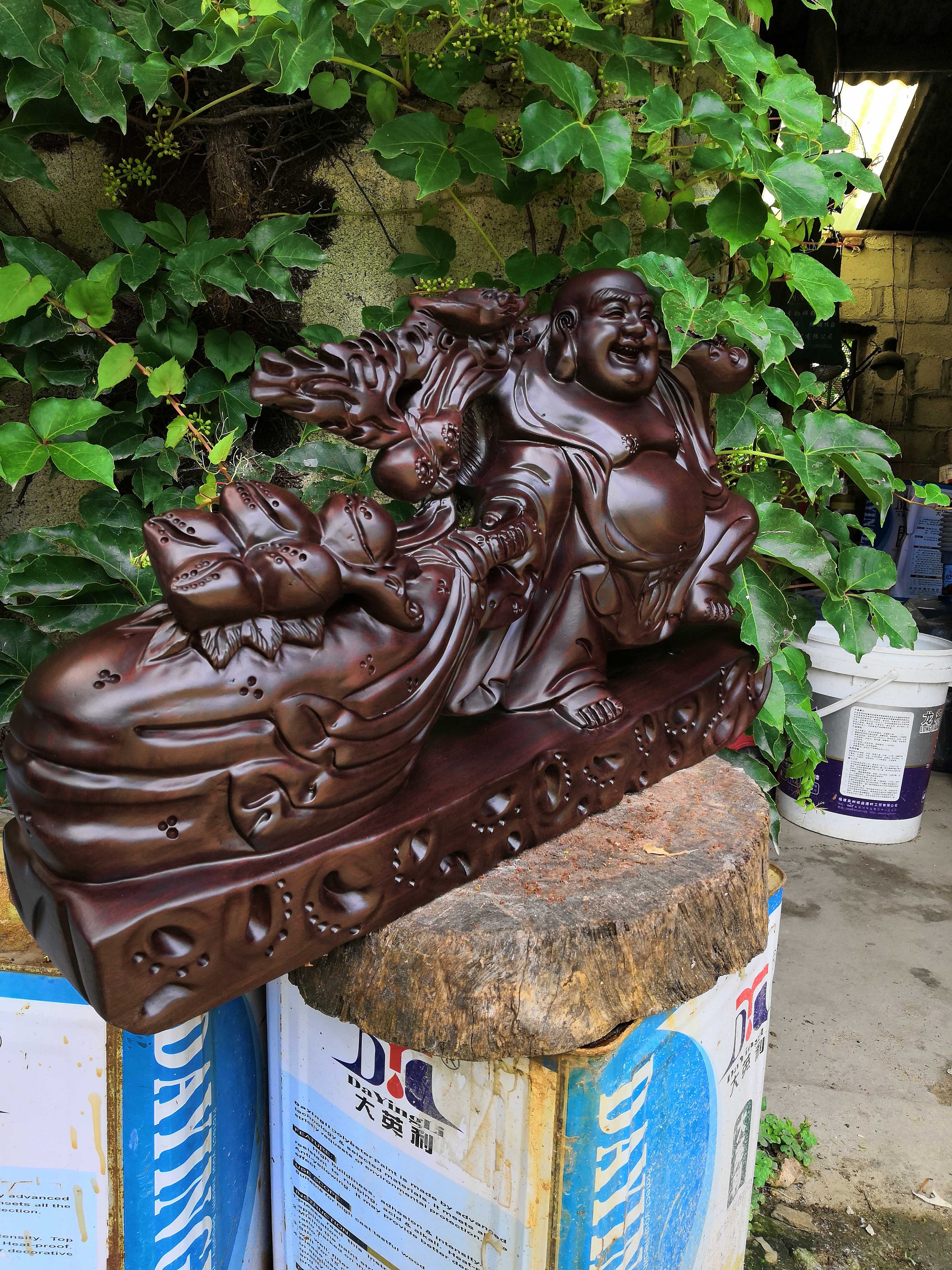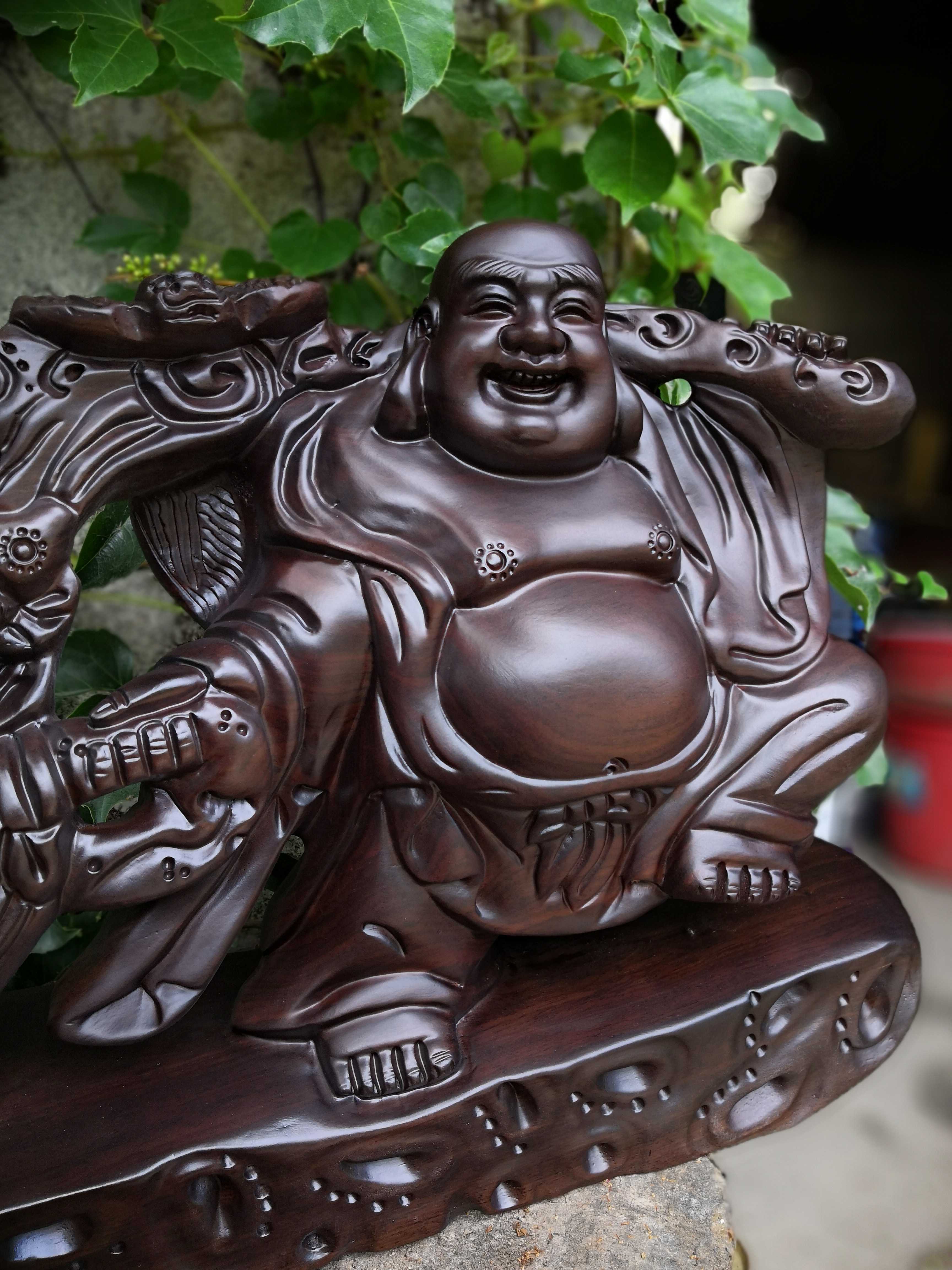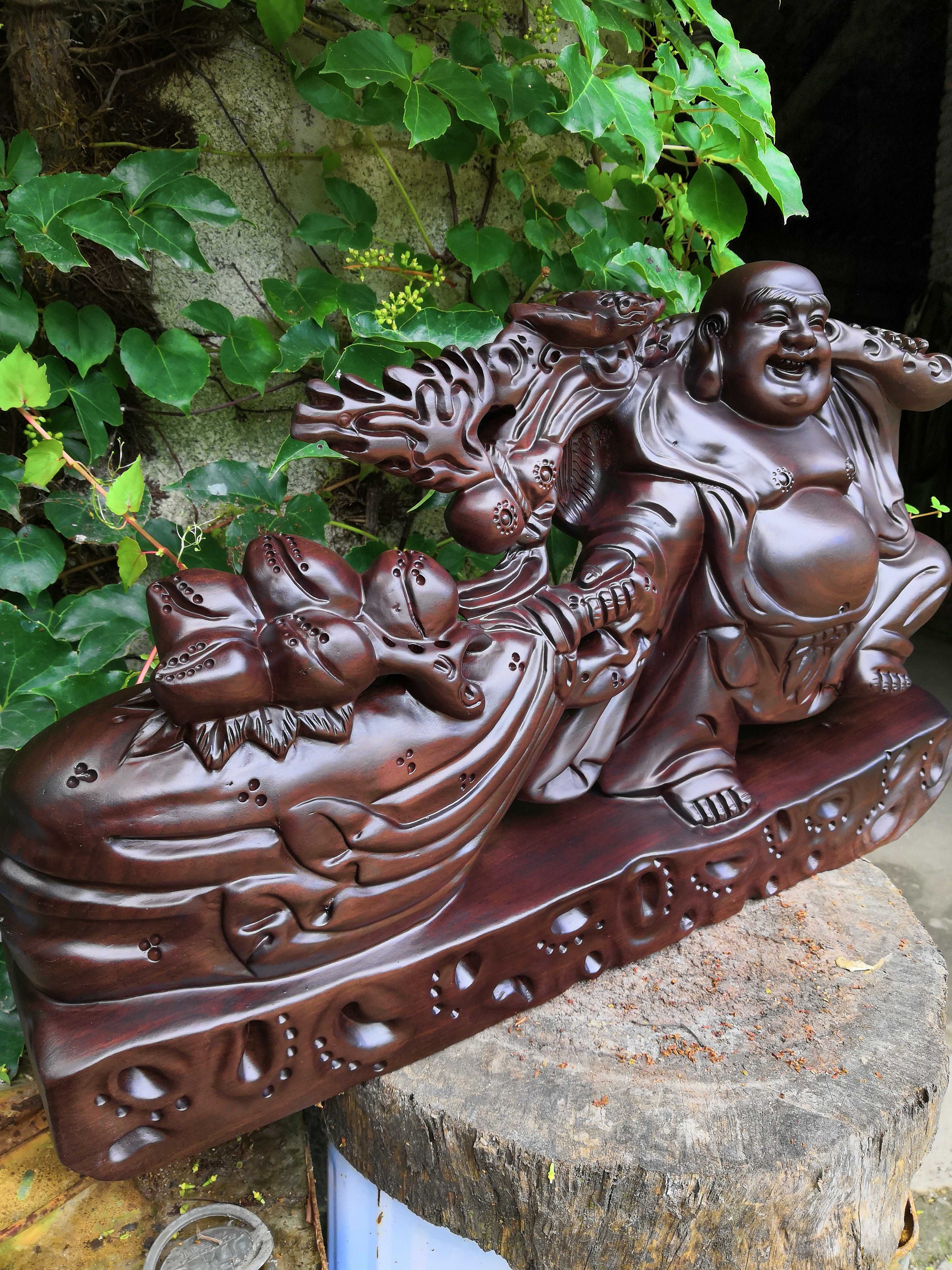 Ebony wood carving Maitreya Buddha statue decoration solid wood to send treasure Buddha wishful cloth bag laughing Buddha mahogany handicraft lucky gift