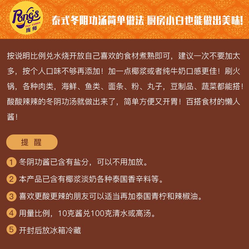 Pang Shi brand Dongyin Gong Sauce 600g Thai Dongyin Gong Sauce Seafood hot pot base soup Hot and sour soup