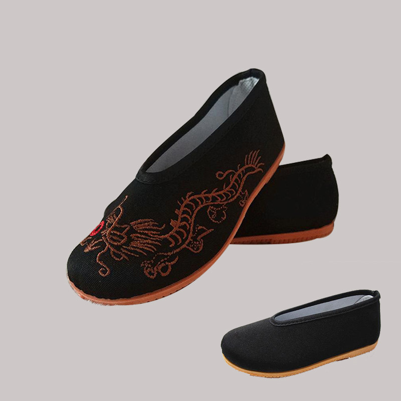 Hoe Lotus Leaf 4 Pieces Bamboo Basket Pure Black Shoes Embroidered Dragon Shoes