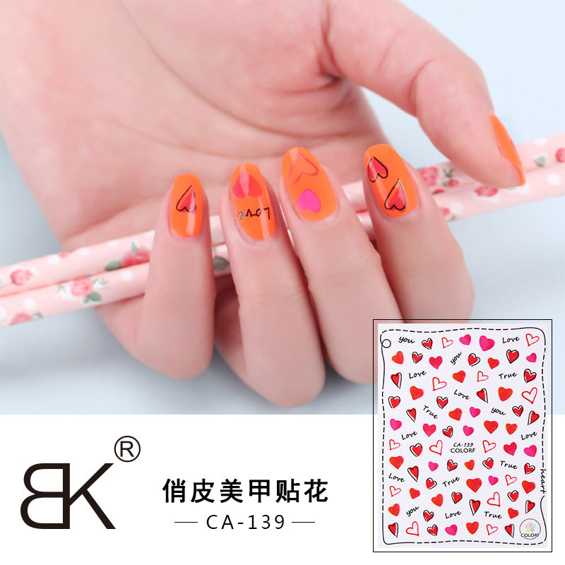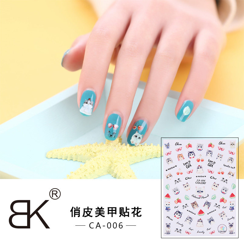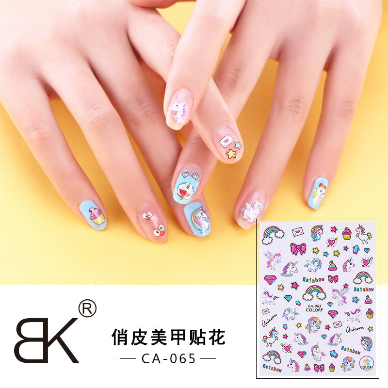 BK nail art stickers full stickers waterproof cute cartoon adhesive 16 optional 3D jewelry nail stickers manicure decals